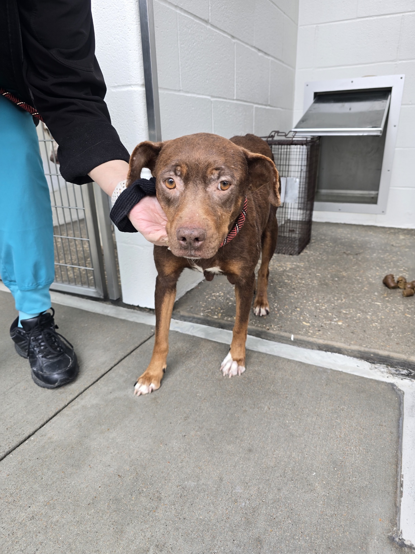 Meet Honey! This 1 1/2 year old girl found her self pregnant and in a kill shelter, only after being pulled off of the cruel streets of Houston. She gave birth, but the babies wouldn't latch. Due to her environment and limited resources, the puppies were taken from her to bottle feed. Honey was left behind to die. Our rescue couldn't let this happen. Since then, they've been reunited. We're trying to do everything to help Mama Honey get her milk to come back in, but the babies are latching now. They are being bottle-fed to supplement. Honey is heartworm positive. She's growling at other dogs to protect her babies. This is typical behavior of a new mama, and we forgive her.